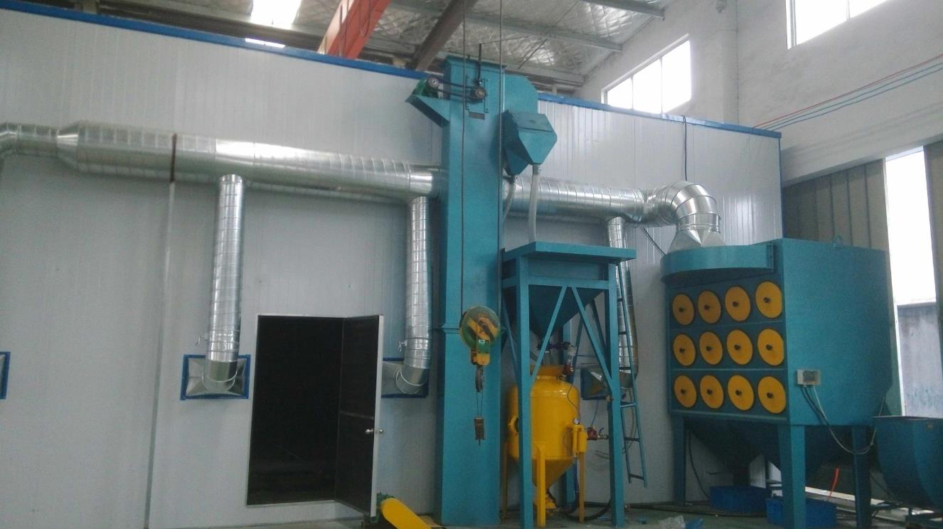 一套完善的噴砂房/噴丸房系統有噴砂/丸房室體、氣源系統、噴砂/丸系統、磨料回收分離系統、通風除塵系統、工件輸送系統、勞動防護系統、照明系統和電氣自動化控制系統等組成;噴砂房/噴丸房主要用于工程機械、橋梁鋼結構、重型機械、集裝箱、機車車輛、航空航天、石油石化、電力、兵器等行業的表面噴砂噴丸處理。公司采用的模塊設計,工廠預制,現